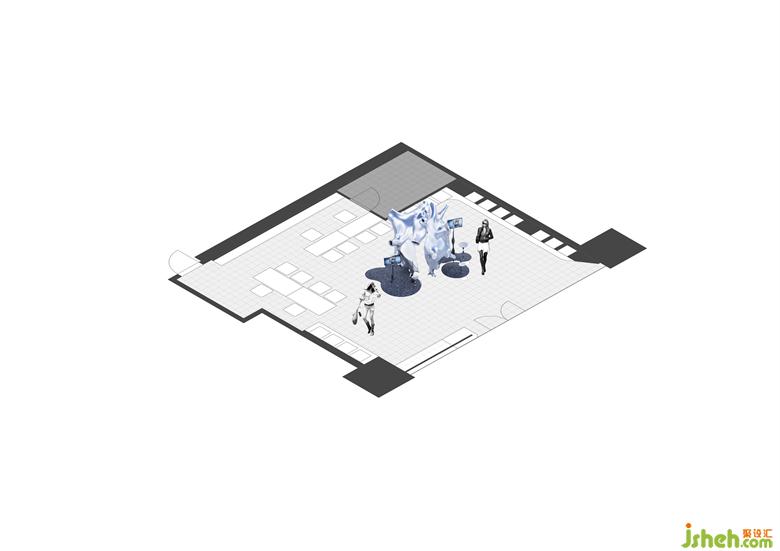 軸測圖:以心臟裝置為中心的排布, Axonometric: arrangement that centeredon the installation “Heart”