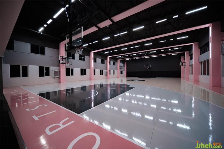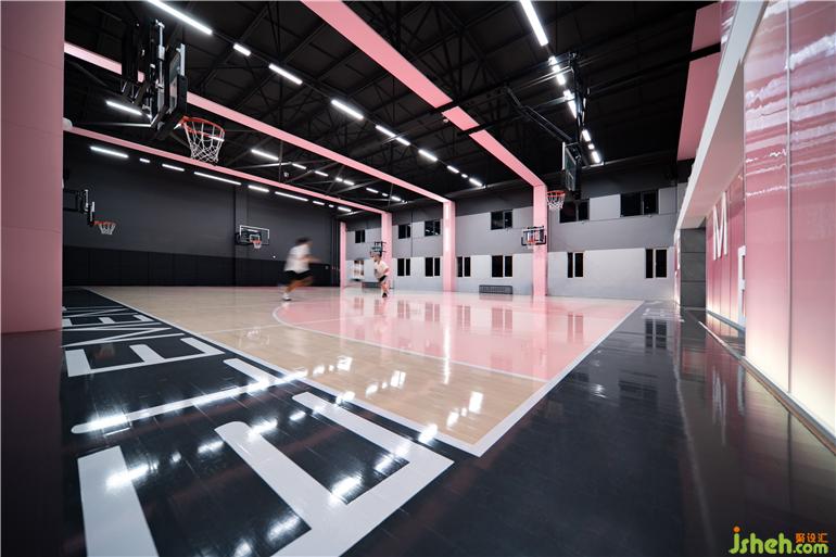 整體視覺(jué)色彩中,黑色粉色搭配帶來(lái)強(qiáng)烈視覺(jué)沖擊力,搭配中和了粉色稚嫩的感,凸顯空間的沉穩(wěn)與深邃,籃球館設(shè)計(jì)平衡了粉紅色帶來(lái)的充滿活力和快樂(lè)的感覺(jué),創(chuàng)造出極致純粹的空間觀感。
