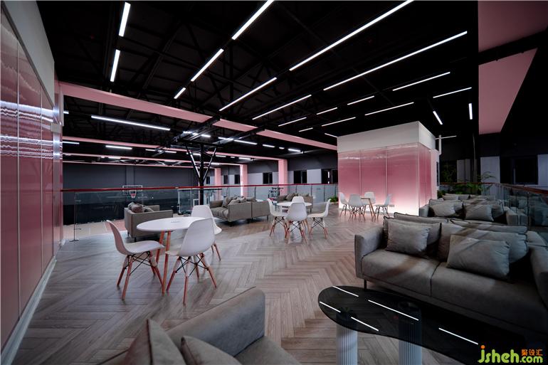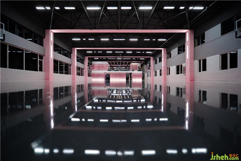 籃球館設(shè)計(jì)強(qiáng)調(diào)被粉色包裹的空間體驗(yàn)與視覺體驗(yàn),相互兩個(gè)方面形成互補(bǔ),用燈光加強(qiáng)立面的粉色漸變,增強(qiáng)視覺豐富性,讓空間體量變得通透完整。