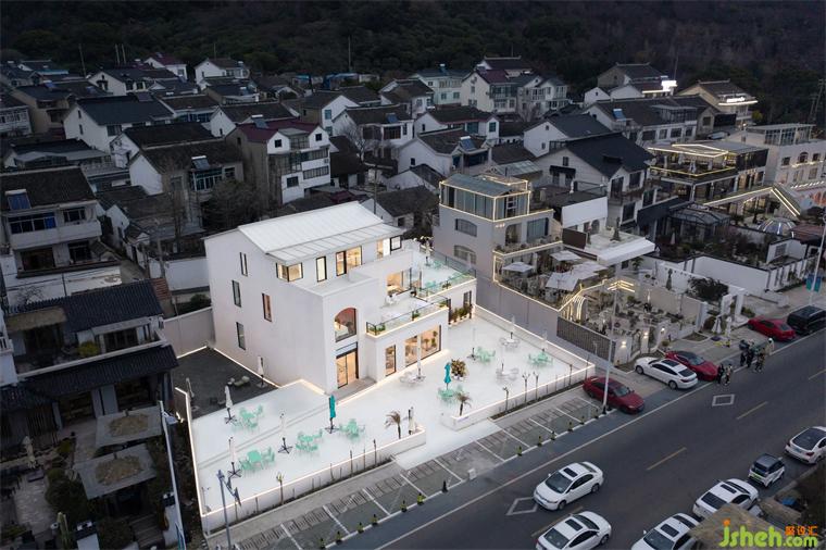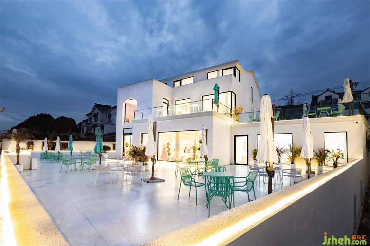 After multiple rounds of discussions and idea collisions with Party A, we finally decided on the concept of renovating this building with layers of platforms, aiming to create a lake-viewing experience of different heights. The project is by Tai Lake, and there are relatively many rainy days in Suzhou. In the early stage of construction, we filled the courtyard area that was lower than Huanhu Road before, so that the previous low-lying and uneven courtyard could be expanded to form a relatively comfortable and flat outdoor courtyard, and the whole of the first floor of the building and the courtyard were slightly higher than the road surface. Through sorting out the structure and demolition of the existing buildings, the architectural design is stacked and shaped through the relationship among blocks, and finally forms a formal relationship of stepping back and forth. The sunken space on the north side of the courtyard can be used to hold outdoor performances and parties. In order to have a better view when looking at the lake, we made relatively large rectangular windows on the building facade facing the lake, so as to present the lake as much as possible in the eyes of the passing guests.