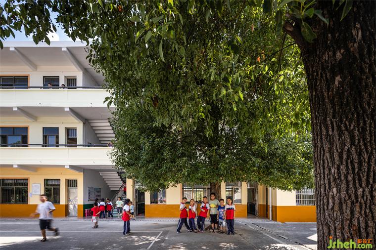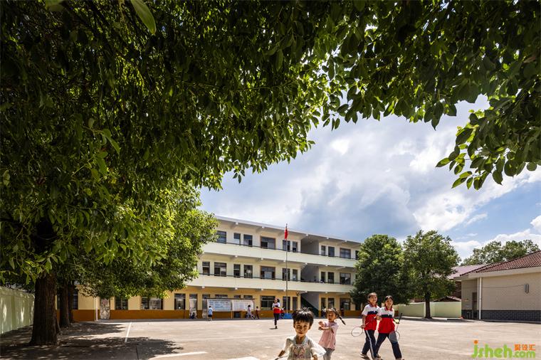 The school is located on the side of the main road in the town, and the neighbouring villagers have a high tendency to build their own houses. The renovation needed to break down the aesthetic fatigue caused by the original outdated, while the architectural pattern could not be changed, the original old school was renewed into a learning and playing space that would be loved by the children.