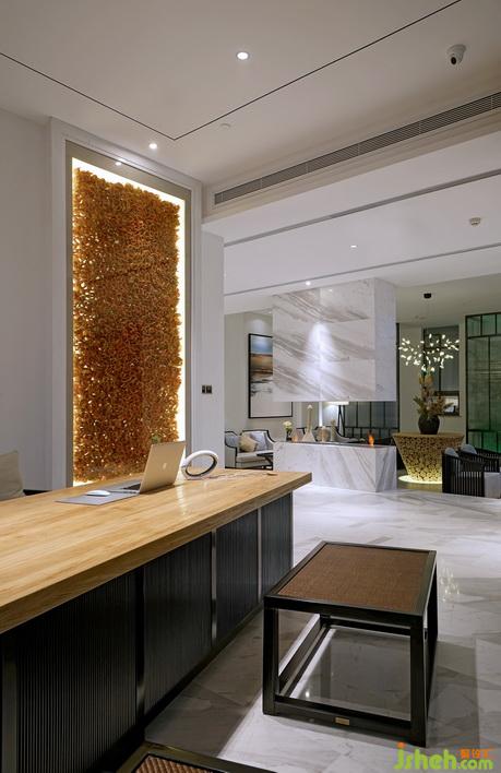 主要材料:爵士白石材、素水泥、?;?、豎紋玻璃、橡木等