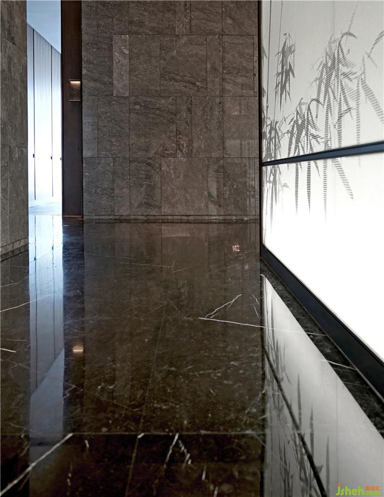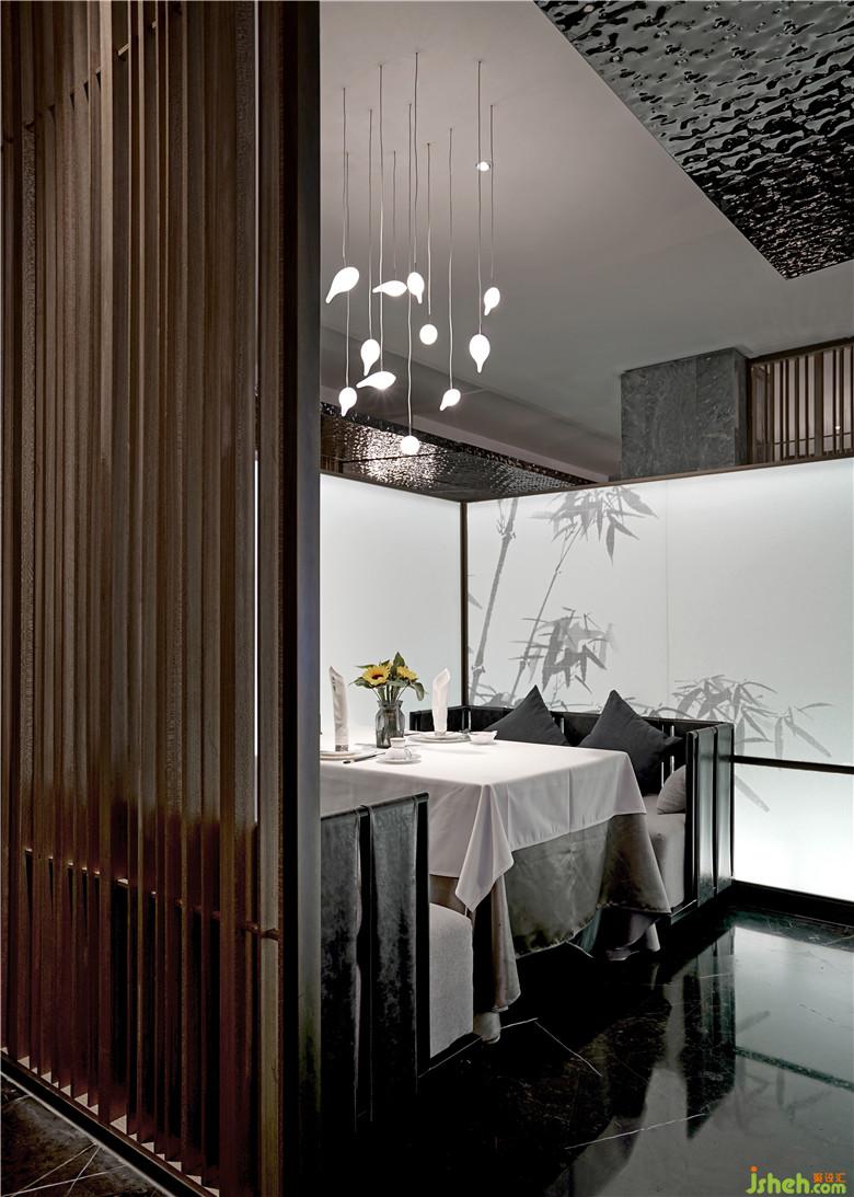 白色的景墻隔斷,是襯托水墨竹畫(huà)與景觀植物的絕佳幕布,與灰色相互應(yīng)襯,然后加之以自然、樸實(shí)為特性的原木色,給人以安靜閑適的感覺(jué)。黑色的巧妙搭配,帶來(lái)了精致的藝術(shù)效果,提升空間層次感。