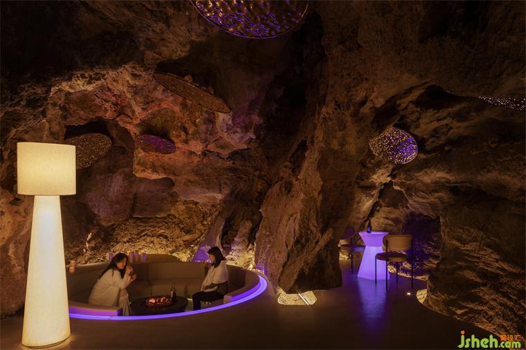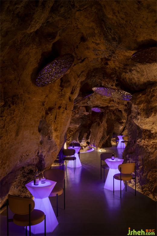 被山體橫穿的一部分室內(nèi)空間,民宿設(shè)計師將它打造成伏羲山最具特色的餐廳包間,讓人們在美食中感受原生態(tài)風土鄉(xiāng)情,體驗靠山而食、依山而居的生活方式。