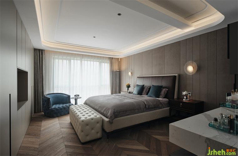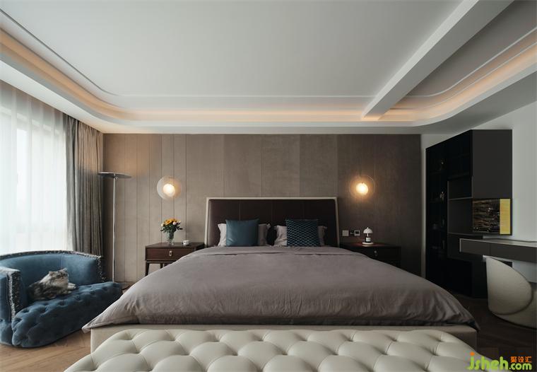 如安藤忠雄所言,奢華的家要有安靜的感覺(jué)。主臥以低飽和度色彩為主,高級(jí)感拉滿(mǎn),又有親和力。