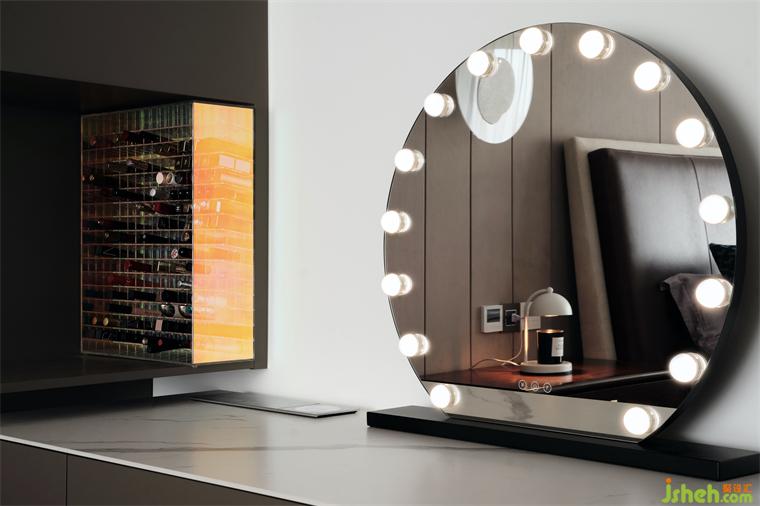 顏值在線的懸掛式浴室柜,家裝設(shè)計(jì)采用墻排式排水方式,造型時(shí)尚,便于清理。柜面與浴室燈的金屬元素,烘托出空間的奢華質(zhì)感。