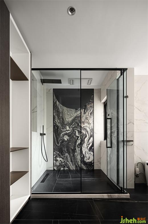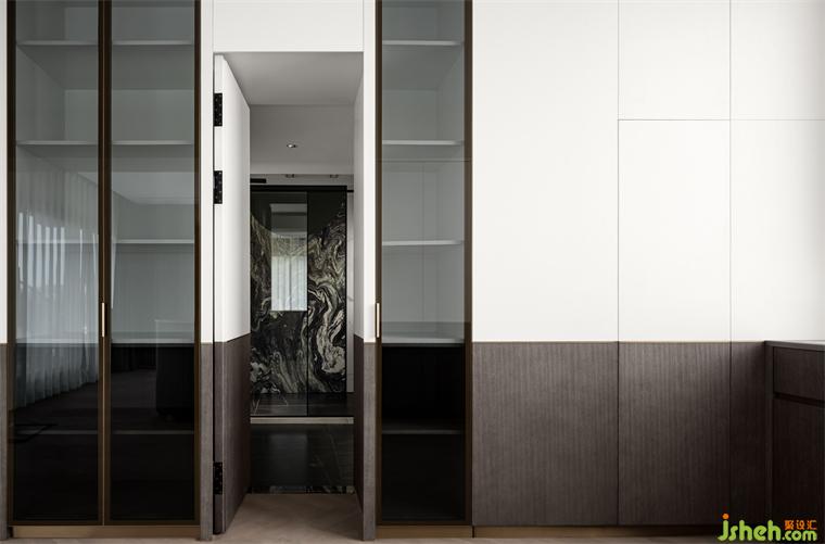 別墅裝飾設計師同樣以蒙德里安的藝術語言,親手設計了玄關處柜體的柜面。沒有復雜的裝飾,僅僅通過點與面的組合關系,在橫向與垂直的韻律節(jié)奏,彰顯出獨特的藝術感。