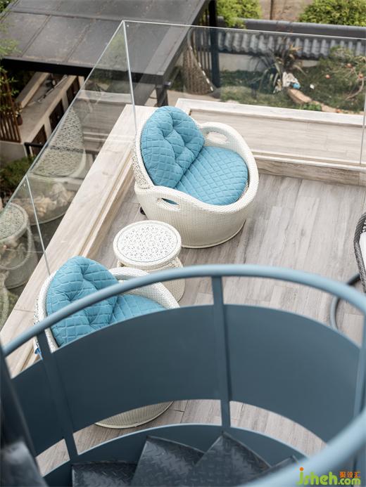 露臺是放飛心緒之地,循旋梯而上,抵?jǐn)垊僦_。走進(jìn)良夜,仰可觀星辰萬象;極目之處,便是蠡湖萬頃湖光。