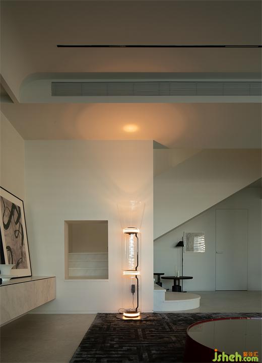 豪宅設計開放的布局好似借鑒了中國山水畫中的高、深、平三種距離的技巧,由樓梯穿連?!叭齻€距離”的概念適用于空間分層的房子,這些距離是視覺和空間層次,更是公共和私屬的區(qū)隔。鼓勵每個人獲得、聯系和擴展他們的內在自我。