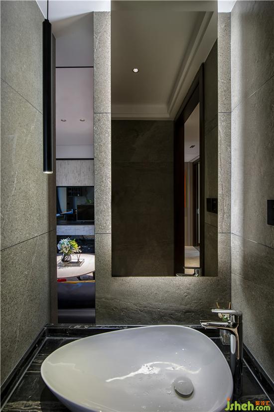 干區(qū)與沙發(fā)背景連為一體“借”客廳的一縷光線(xiàn)使整個(gè)空間更顯得通透,從干區(qū)往客廳看增加了美感,在不同光線(xiàn)的作用下,自然細(xì)密的肌理顯露出不同層次的色彩,方寸間勾勒出碎碎念與小歡喜,層層鋪開(kāi)溫馨的生活碎片。