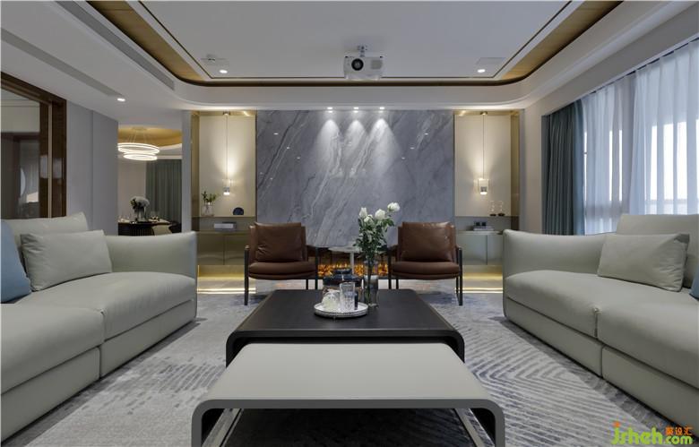 270㎡的現(xiàn)代風大尺度空間中,設計師運用黑白的簡約色系為主視覺,佐以溫潤軟裝與金屬線條,呈現(xiàn)恰到好處的奢華感。金都海尚的設計,以人的尺度規(guī)劃空間,梳理空間的水平與垂直動線,承襲詩意和溫潤,以金屬展現(xiàn)時尚與奢華,通過富有藝術感的美陳和家居,營造詩意的棲居空間。設計師將“雅奢”作為空間設計的格調核心,以現(xiàn)代灰與白為主色基調,用自然光影和家具陳設的點綴以及壁爐使其煥發(fā)出藝術生命力。