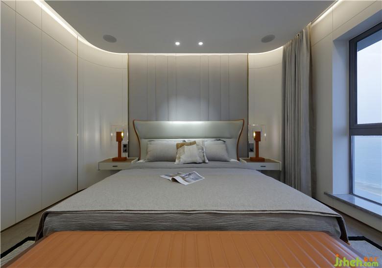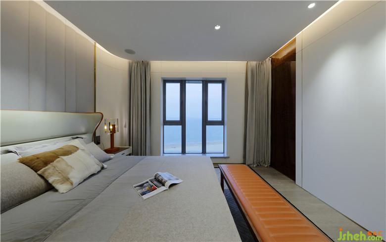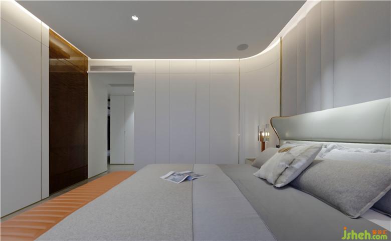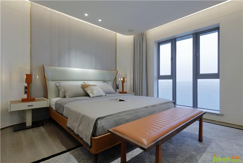 設(shè)計是感性與理性的平衡,主臥房間內(nèi)鋪設(shè)橡木地板,觸感細膩溫暖。床頭背景以紋理豐富的硬包鑲嵌金屬作為分割,比例精到,恰到好處!以沉靜的色調(diào)搭配極具時尚感的金屬和愛馬仕橙,打造高貴,奢雅的生活空間,并流露著一種柔美與力量并存的素雅之美……細節(jié)處的質(zhì)感是最能體驗奢華的存在,含蓄,而帶些驕矜,是極盡絢爛之后的樸素,是低調(diào)淡然的空間氣質(zhì)