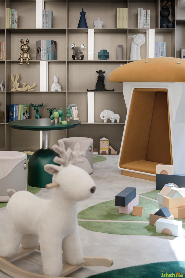 夾層書房,設(shè)計師特意選用木、瓷、紙等東方美學(xué)元素點綴空間,樣板間設(shè)計居者可在此靜心品茗賞味、恣意揮灑筆墨、或自在把弄古玩。沉浸式場景打造,賦予空間文人雅士般的氣質(zhì),靜享生活的淡泊與寧靜。