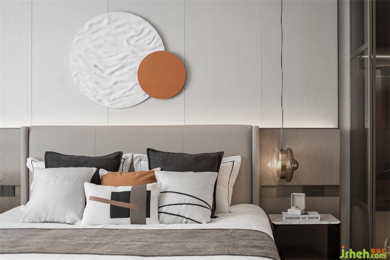 主臥以沉靜溫暖的色調(diào)營造寧靜柔和的空間氣質(zhì),煙波浩渺的海面冉冉升起一輪圓月,樣板間設(shè)計勾勒“月下休憩”的詩意。大面積飄窗延伸空間的更多可能,閱讀、發(fā)呆、靜靜欣賞窗外的風景……多種美好在此發(fā)生。