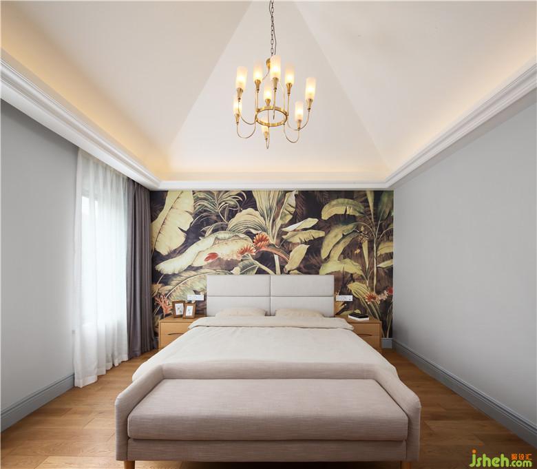 父母房床頭大片的芭蕉風(fēng)景床頭墻背景引人駐足浮想聯(lián)翩。別樣的視覺呈現(xiàn),足以在第一眼捕獲人的歡心。臥室設(shè)計從傳統(tǒng)藝術(shù)形式的留白、簡約中提取元素,室內(nèi)設(shè)計師沿用簡練、雅致的設(shè)計筆觸。素色墻紙和原木色地板奠定了整個空間溫暖舒適的基調(diào),藍(lán)灰色線條提升了空間的張度,自帶時尚與浪漫。純粹的色彩,質(zhì)樸的材料,光影的變化,創(chuàng)造出室內(nèi)空間所需要的溫潤情感。虛實相生形成妙境,完美得演繹出現(xiàn)代設(shè)計的純粹精神,闡釋著生活的禪意。
