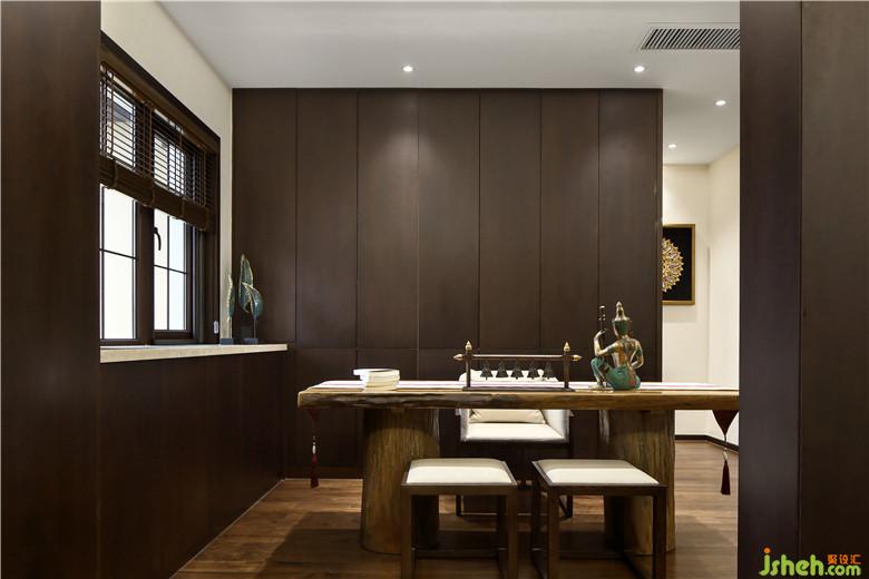 整塊實(shí)木材質(zhì)的茶臺(tái)透露著主人所追求的生活態(tài)度,邀上三五好友,品茗言歡,然后聽我給你講它的來歷、我的見聞和你的故事。