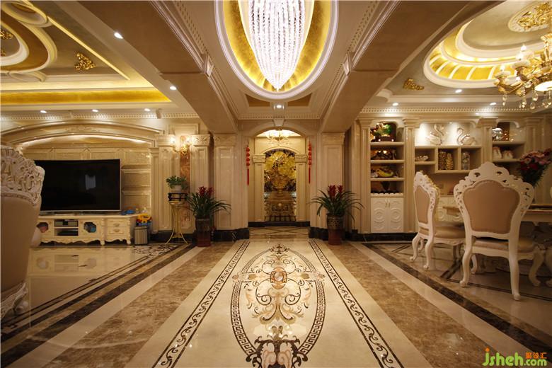 室內(nèi)設(shè)計(jì)師采用全案頂級(jí)莎安娜大理石的運(yùn)用,潤澤而富有靈氣,高貴范兒十足,酸枝與花梨鑲嵌的地板。