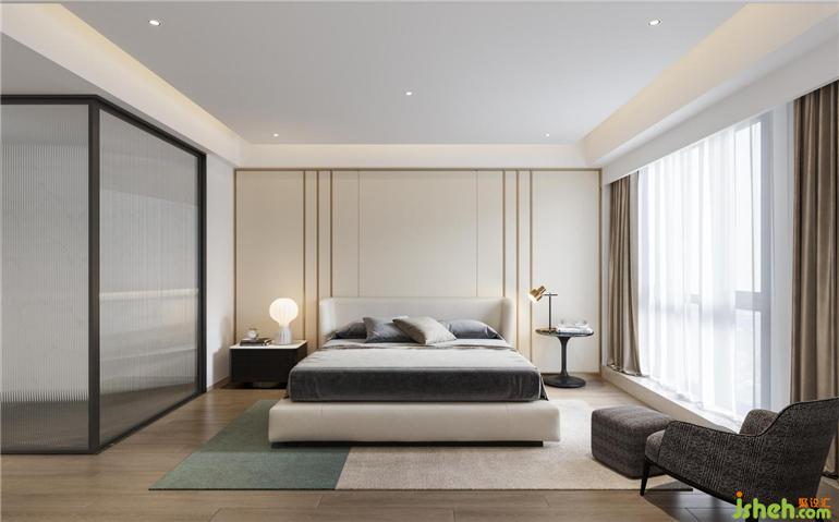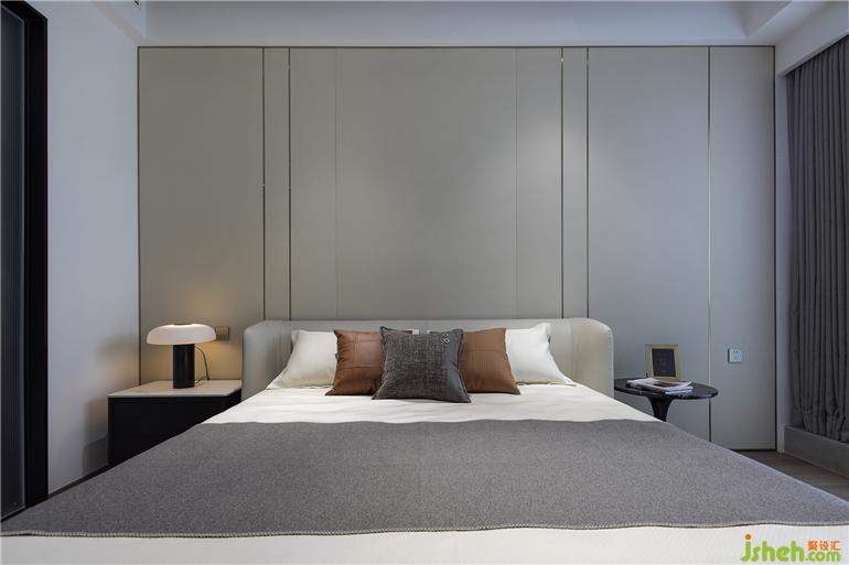 一處美好的居所就像一幕精心排演的話劇,訴說著主人對生活的熱愛以及對家人的關(guān)照。在這個精神與身體歸屬的空間里,呈現(xiàn)生活的本質(zhì)。主臥以簡約、雅致為基調(diào),大平層裝修設(shè)計在L型布局的套房設(shè)計中嵌入步入式衣柜,有效利用空間。半圍合式弧形床頭,搭配白色蘑菇燈,點(diǎn)亮溫柔的夜色,為主人的安眠營造一份靜謐和安全感。