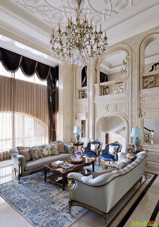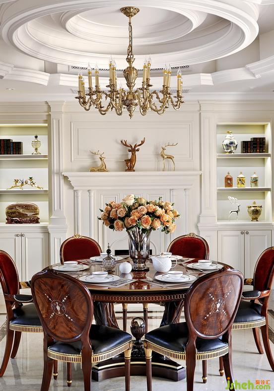 古典的玫瑰金材質(zhì)在雕欄、水晶吊燈、銅鏡、家具上的穿插點綴,像星光在天鵝絨般的夜空耀眼璀璨,將古典歐洲的風雅體現(xiàn)得淋漓盡致,平添了幾分貴族氣息。別墅裝修設計