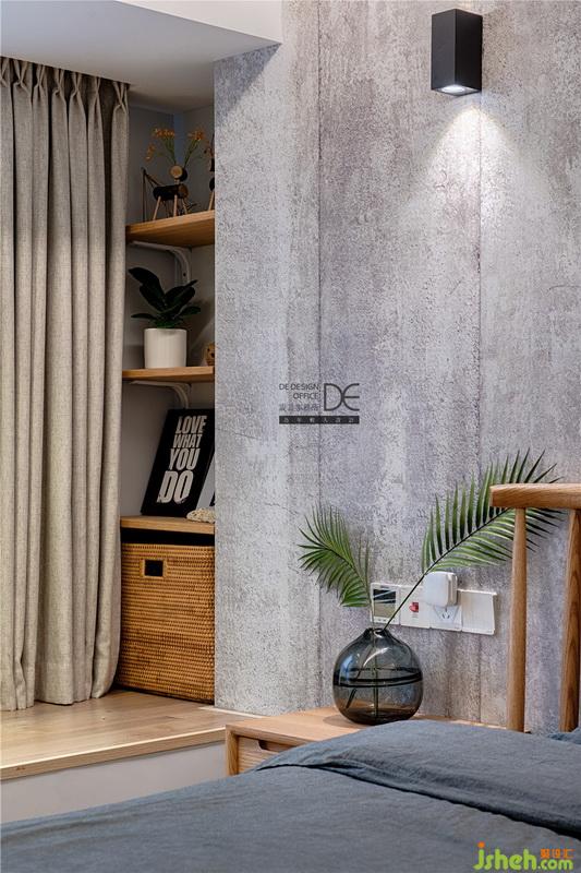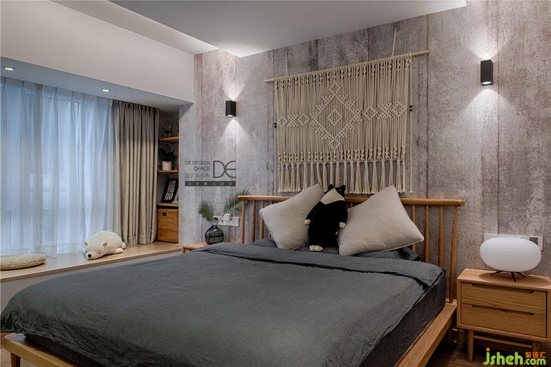 臥室墻面使用仿砂巖墻紙,為了營(yíng)造質(zhì)樸干凈的空間感,避免燈光直射眼睛,室內(nèi)設(shè)計(jì)師特別采用了環(huán)境光的處理方式,加上頂面的漫反射和墻面的花燈設(shè)計(jì),讓整個(gè)空間溫暖又舒適。