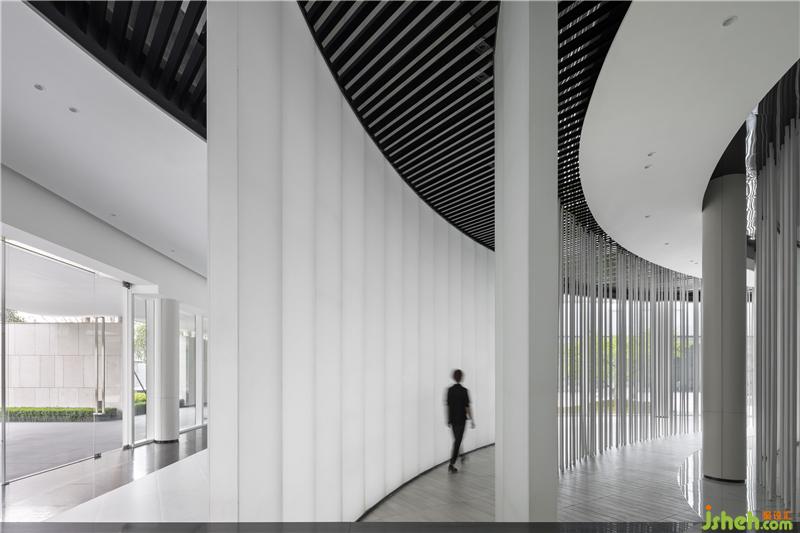 迂回動線是為實現(xiàn)‘漫步’的手法,配合干凈利落的形態(tài),感應(yīng)江南婉約、靈氣與從容。