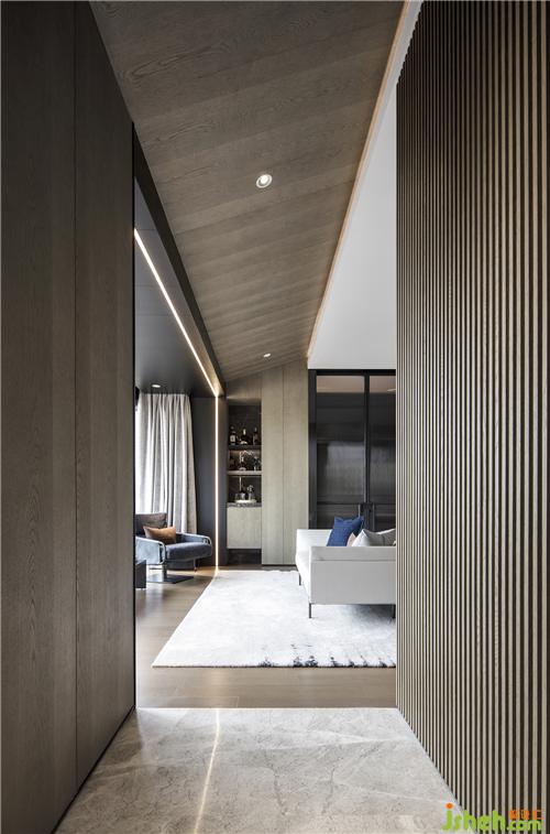 而木地板延伸到壁面的巧用,描寫出環(huán)境的包覆性,然而空間在人與自然間,不應(yīng)該是分隔,而是一種連結(jié)。