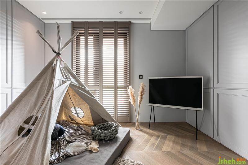 游戲室(客房)是屋主夫婦給孩子們的大娃娃屋,浪漫的線板點綴,臺式風(fēng)格家居搭配木百葉窗撒落的光影,這是每個孩子都會舍不得離開的夢幻樂園。
