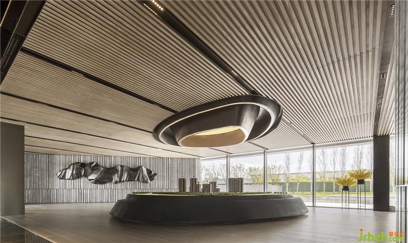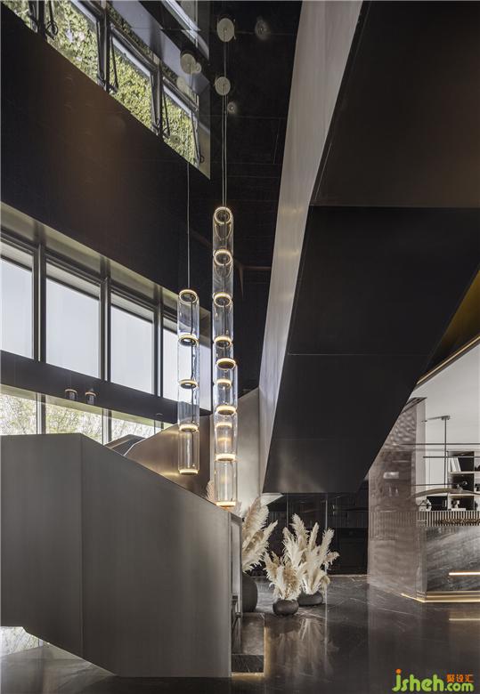 近境制作室內(nèi)設(shè)計貫穿了傾斜與異形的建筑體塊,以棱角分明的現(xiàn)代力量感,有意區(qū)別于生活的自然形態(tài)。深色系的空間基調(diào)之上,漫反射的光照模式和光滑飾面的二次反射相結(jié)合,營造出幽遠(yuǎn)科幻般的視覺廣度。