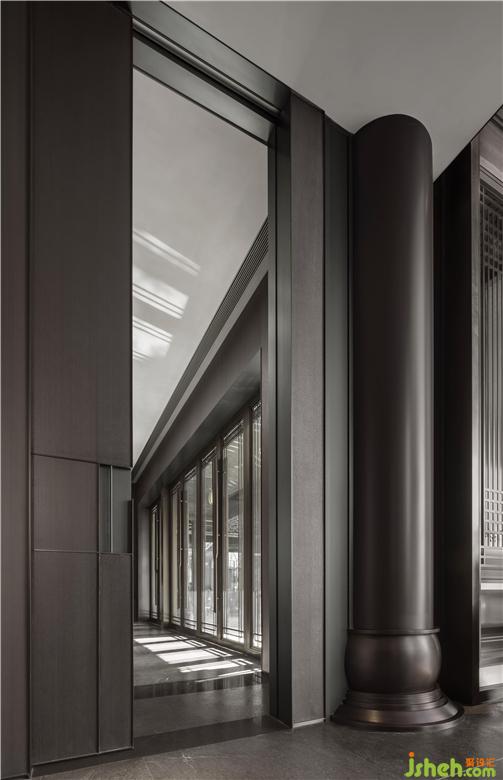 VIP室借鑒了中式古典園林中的“借景”,將整個(gè)中庭景觀引入室內(nèi),將其作為空間中最大的藝術(shù)品,鋪開(kāi)一幅生動(dòng)立體的畫卷將四水歸堂的東方古典園林轉(zhuǎn)換成為空間中最大的藝術(shù)裝置,結(jié)構(gòu)環(huán)繞的空間場(chǎng)域和彼此相望的廊道,在動(dòng)在線形成可游可觀可居的空間關(guān)系。