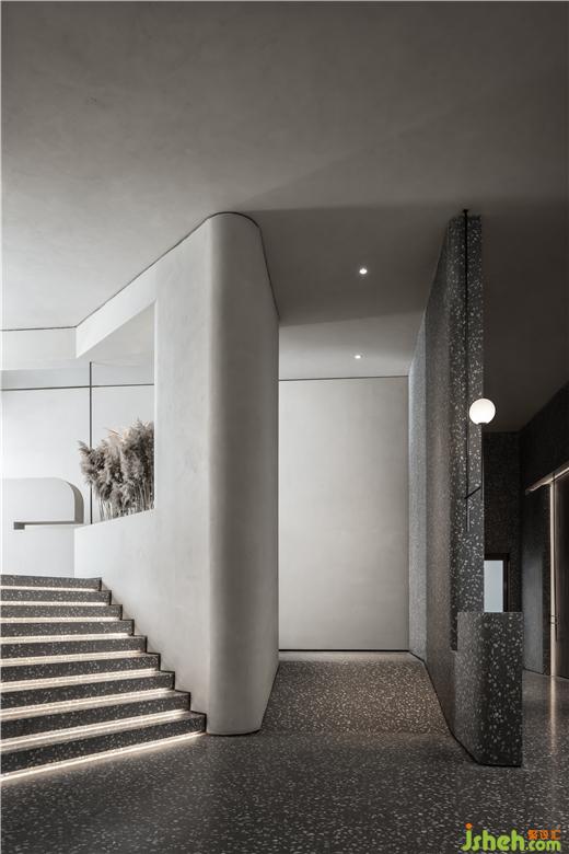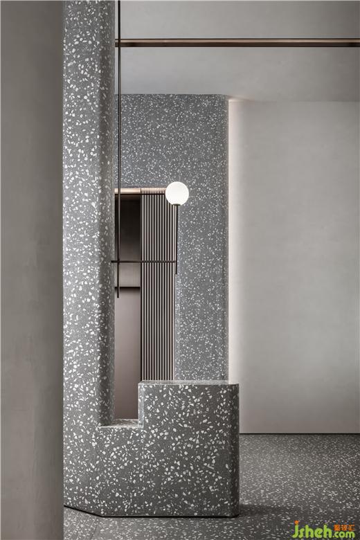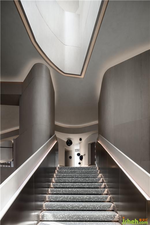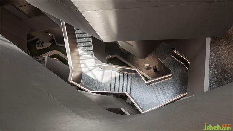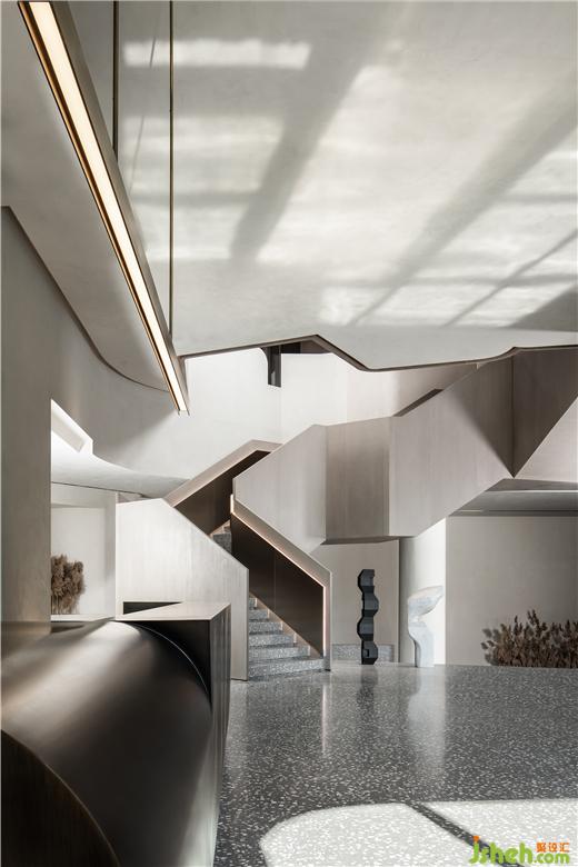 售樓處設(shè)計(jì)在平面構(gòu)成的語言上,提煉出峽谷和溪流形態(tài)為建構(gòu)載體,通過仿生學(xué)設(shè)計(jì)的抽象提純。運(yùn)用西方極簡繪畫手法將“山”的語言改編,用以轉(zhuǎn)化接待臺(tái)的輪廓,當(dāng)幾何形態(tài)滿載于多維空間時(shí),便豐富了建筑的內(nèi)在層次,實(shí)現(xiàn)了室內(nèi)節(jié)奏、韻律、情感的統(tǒng)一。大自然賦予萬物的形體、累積而來的生活方式,皆為建筑帶來了不同程度的豐富,在人與自然之間,掙脫了界定,傳遞更多對(duì)于未來的想象。