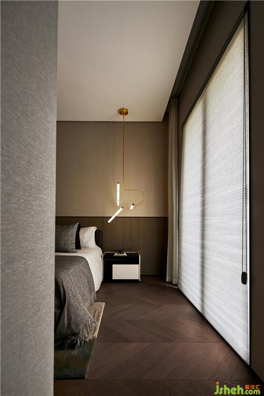 臥室空間,保持最大的開(kāi)闊性,將室外的綠植光彩引入堂室。主臥回字型的動(dòng)線(xiàn),希冀悠然不受限的生活體驗(yàn)予人。