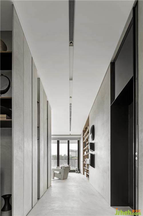 夜深了走回室內(nèi),推開景觀挑空區(qū)的玻璃門片,穿過月光映照的雞蛋花樹,坐入茶席。靜謐協(xié)調(diào)的空間石材搭配,伯爵石、米黃石皮,與深沉穩(wěn)的印度黑石材,圍塑出最平穩(wěn)的心境。品著月光,賞月、賞時(shí)間在石皮墻面流下的歲月痕跡,與自然與時(shí)間最貼近的距離,彷彿整個(gè)宇宙天地歸依在這一方空間,沉靜詩意的靈魂,只有茶香與自己。