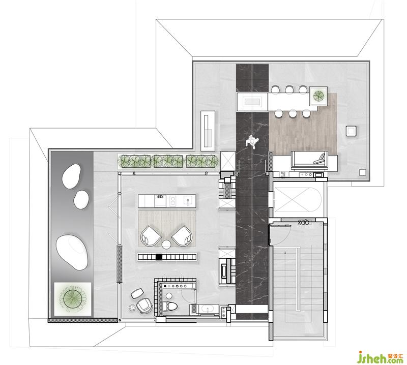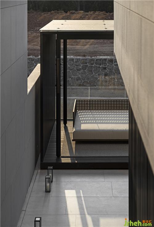 大氣的印度黑石材的地面材質(zhì)臺面上展示異形藝術(shù)品,相互造成的有趣對話,三亞樣板房設(shè)計點綴著全家人愉悅的相處空間。此藝術(shù)品兼具座椅休憩功能,在空間使用上帶出精致生活感,大露臺如同一個展示藝術(shù)品的美術(shù)館。