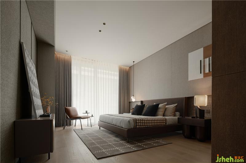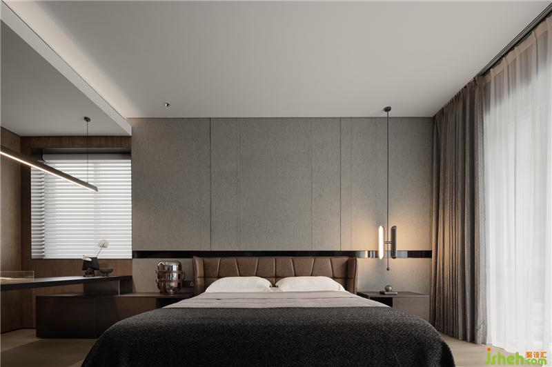 次臥與客房搭配不同深淺的床頭主墻,??跇影宸吭O(shè)計(jì)作為整體調(diào)性的掌控,配合色彩的輕重,區(qū)分年紀(jì)與不同使用者的設(shè)定。