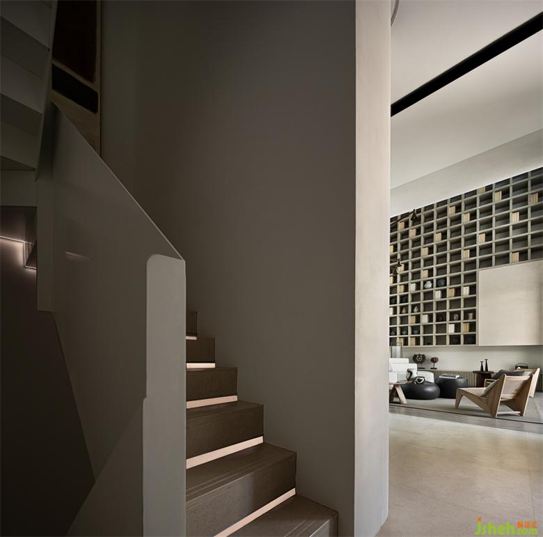 踏階以簍空的形式,利用金屬隔屏使空間簡約明快,線性光源詮釋了空間層次感。