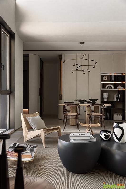 樣板房設計搭配錯落的吊燈,呼應前后的關系,使量體産生虛實的變化