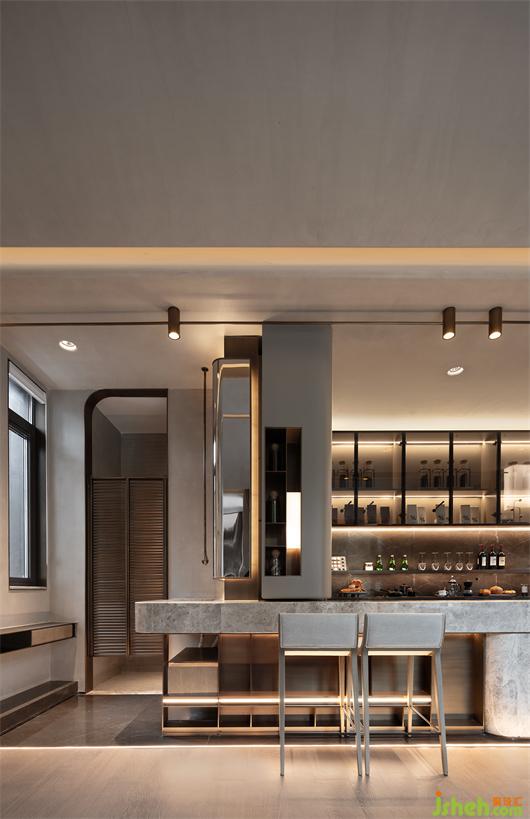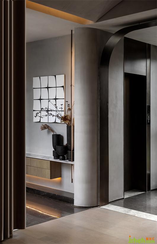 潔凈的天花與米灰色墻面、極具腔調(diào)的灰色皮革背景、舒適溫暖的布藝床品,在簡約的空間中相得益彰,構(gòu)建了一個(gè)遠(yuǎn)離都市喧囂的詩意空間。
