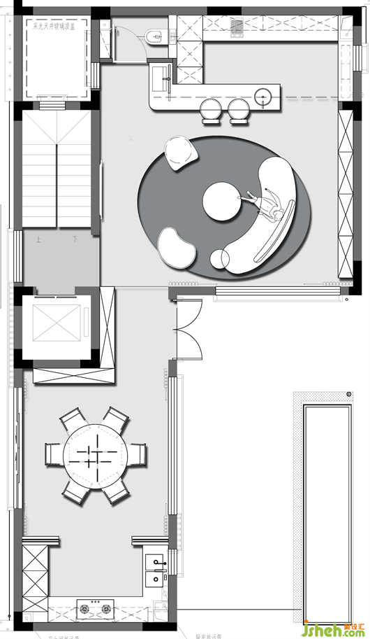 挑高的地下室,以灰色基調(diào)為伊始,結合線條與金屬質(zhì)感,為空間注入精致與高級感。