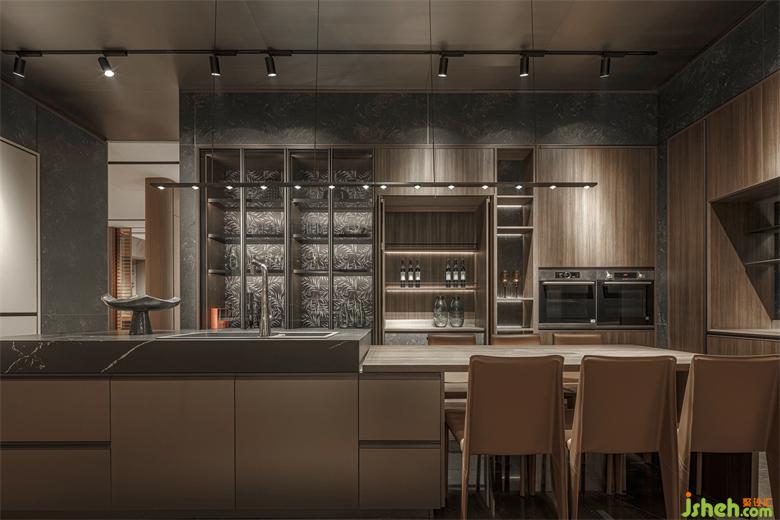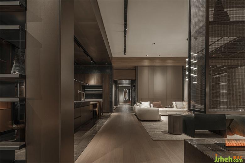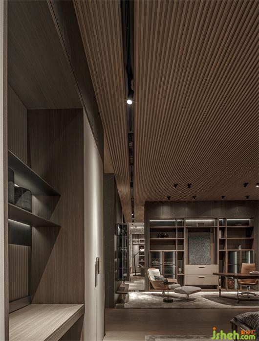 大面積運用格柵天花與金屬材質(zhì)搭配