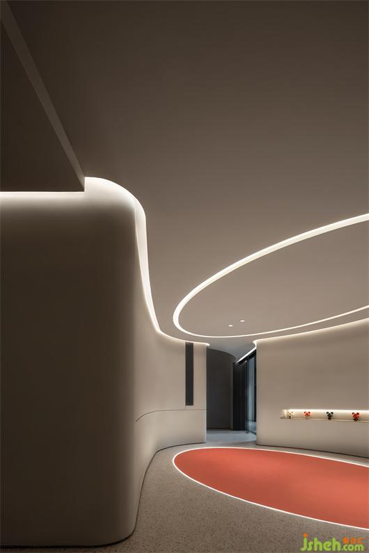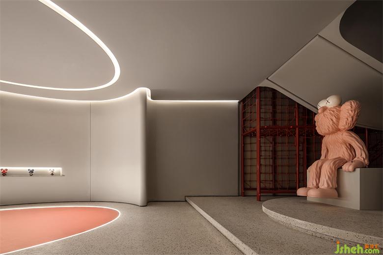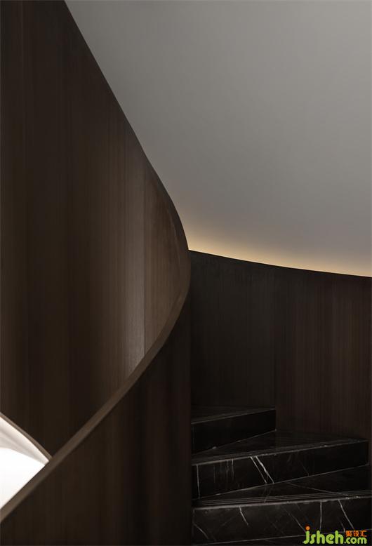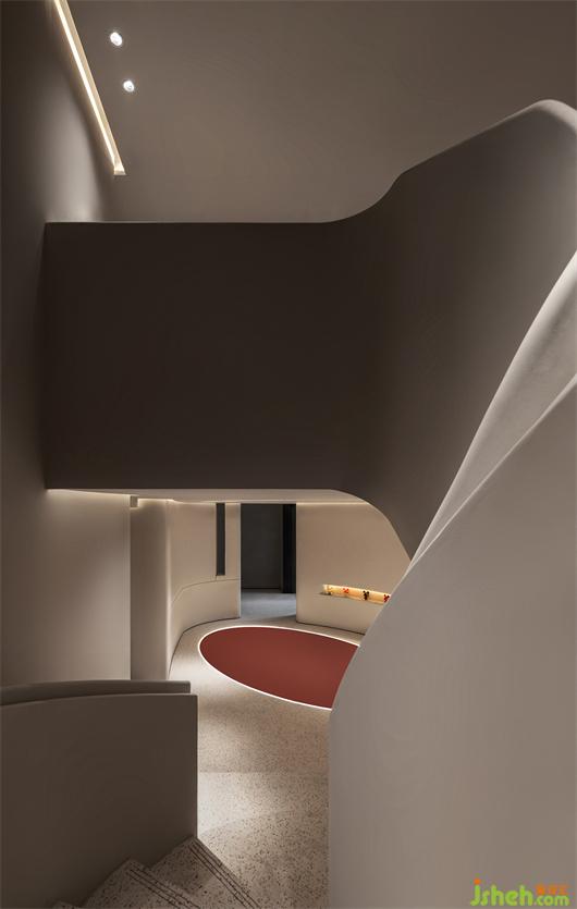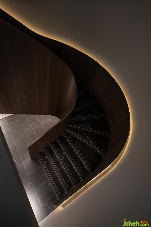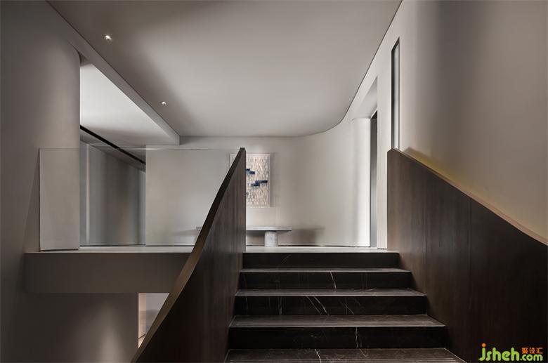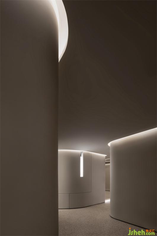 武漢會所設(shè)計貫穿了折面與弧線的型態(tài),以體塊分明的形式處理,結(jié)合局部開槽、疊加、牽引的設(shè)計手法,讓建筑體態(tài)在空間中自然的伸展。