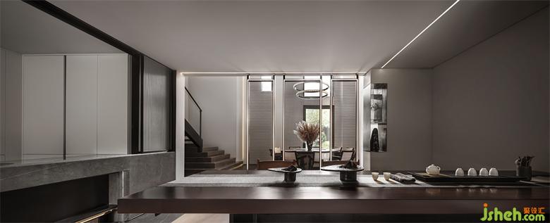 售樓部將古典園林的概念剝離,用當(dāng)代極簡手法處理,通過“借景”,“框景”,“對景”的手法把彼處的景物引入此處,讓空間互相滲透,豐富空間的層次感,正如《園冶》中所說的“巧于因借”,虛中有實,實中有虛,或藏或露,或深或淺……與鬧市中取一靜處,旁門偏出驟然間鉆入“山林”。