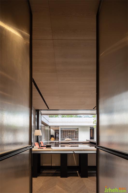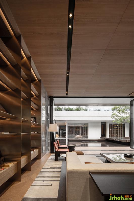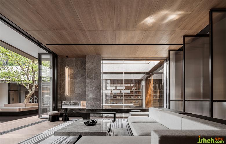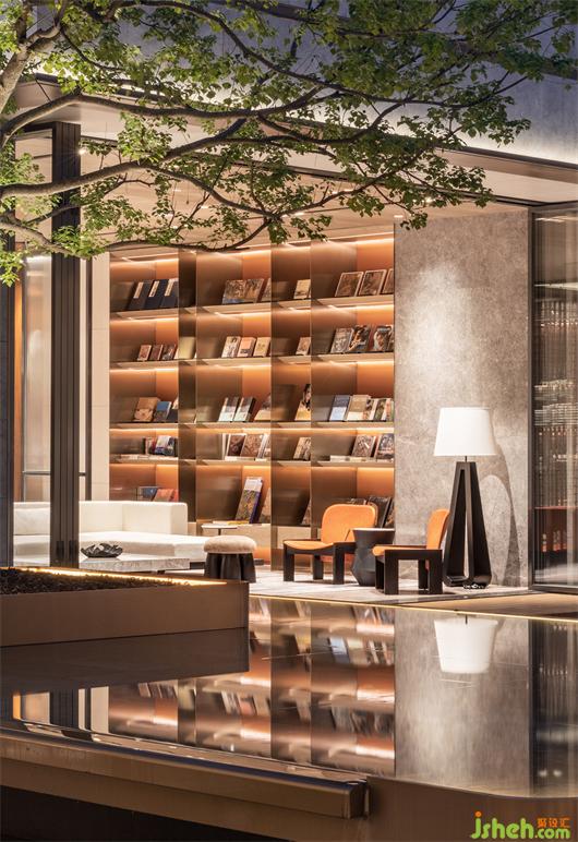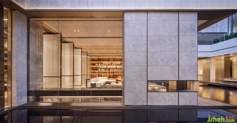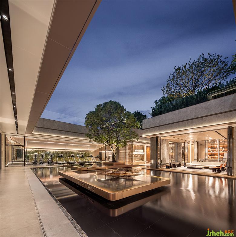 售樓處操作方式有別于以往的臨時性建筑,利用天然的地勢高差將主建筑的負一層打造為售樓處,采用私人社交俱樂部的營運設定結合高定化會所機能,未來售樓階段結束后直接轉化為會所,交由專業(yè)營運機構采用會員制運營,為小區(qū)提供社交空間。