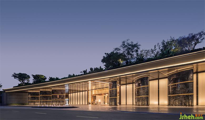 項目位于廣州增城荔枝文化公園邊上,緊鄰公園內600畝綠色森林,綠意環(huán)繞,會所設計項目宗旨希望打造隱身在綠色樹海中的世外桃源,透過行徑的路線與空間的序列排布,營造出沉浸式的空間體驗。