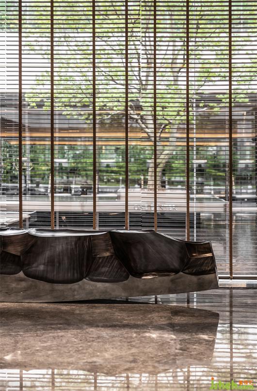 本案建筑量體為五棟塔樓,一層為庭園景觀連接戶外露天泳池及吧臺區(qū),中間開有口字型大型采光天井,會所設(shè)計將光線及自然景觀引入負(fù)一層的會所空間,透過中庭水面的波光反射創(chuàng)造空間中的戲劇性。