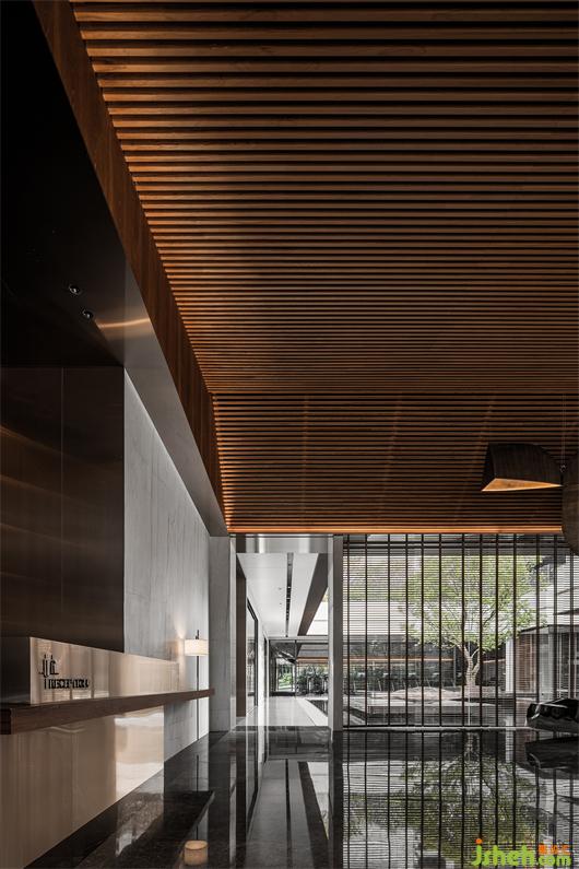 本次會(huì)所設(shè)計(jì)主軸概念為錯(cuò)動(dòng)的盒子,在井字型規(guī)律的九宮格空間中以機(jī)能劃分不同區(qū)塊,然后錯(cuò)置、延伸,創(chuàng)造出漂浮在水面上的盒子,打破規(guī)律的室內(nèi)外界線,讓水面更貼近室內(nèi)空間,模糊邊界的定義.