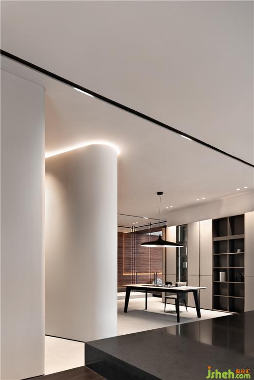 空間與藝術(shù)相結(jié)合,相互對(duì)望。顧家展廳設(shè)計(jì)將雕塑的概念編織進(jìn)空間的設(shè)計(jì)語(yǔ)言中