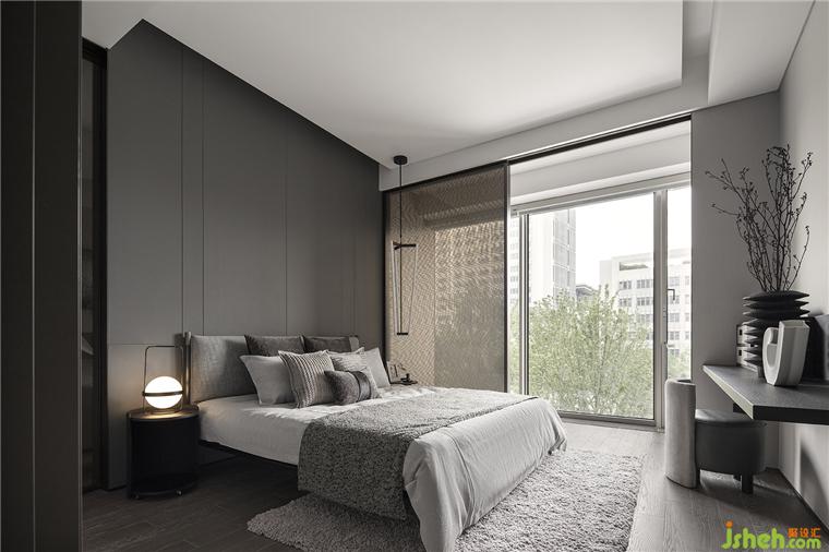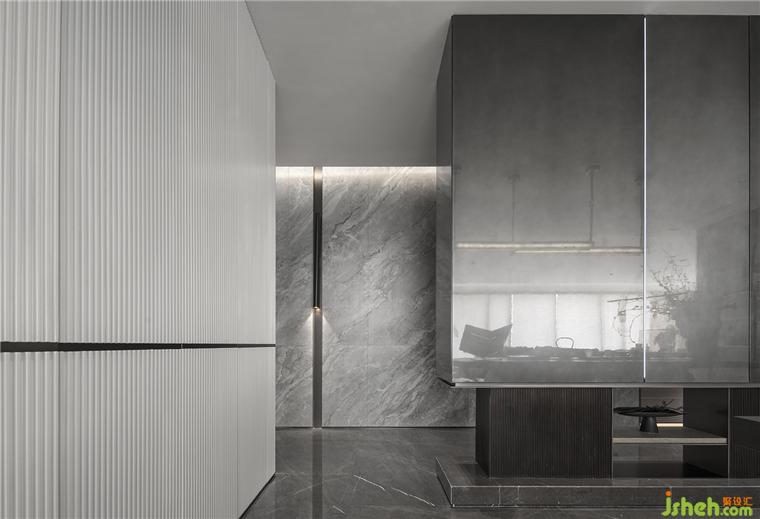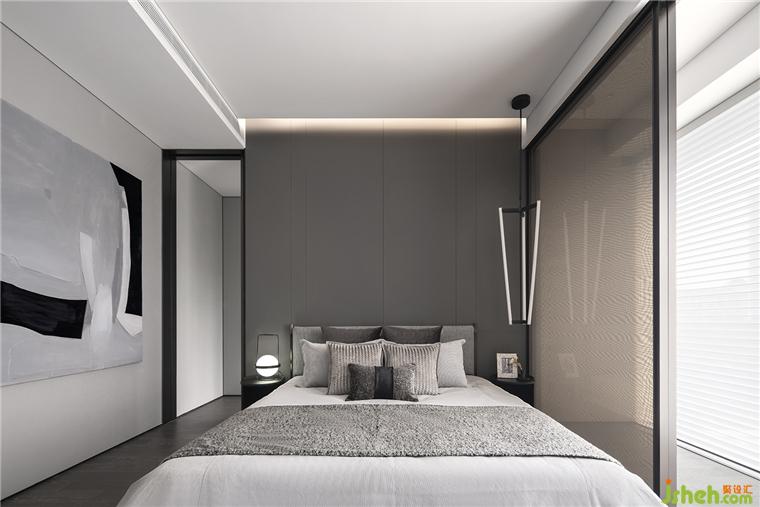在主臥與私領域的廊道細節(jié)裝點的設定,過道的氣氛即產(chǎn)生變化,豪宅裝修設計增進日常生活的儀式感,物境–意境–心境的轉(zhuǎn)變。主臥房為套房設計,以溫潤的皮革、柔軟的墻布,展現(xiàn)氣質(zhì)與溫度營造沉穩(wěn)克制的氛圍,木地板與石材的地面鋪設方式釋放了空間的視覺感,尺度舒適,對材料進行重新分割組合,強化空間品質(zhì)。