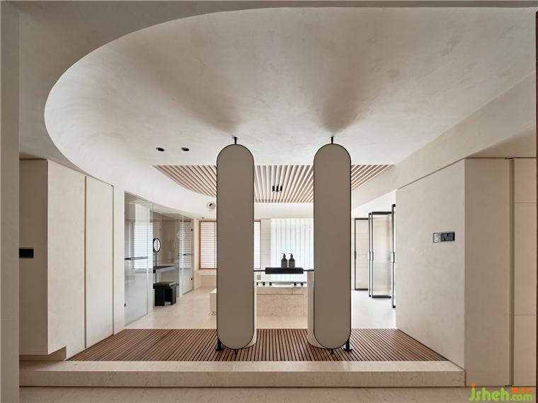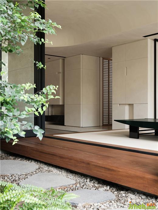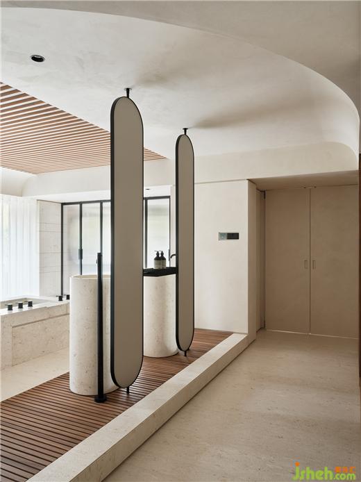 花木重姿態(tài),音樂重旋律,書畫重筆意,溫泉度假別墅裝修設(shè)計重意境。瑞士思想家阿米爾(Amiel)曾說:“一片自然風(fēng)景是一個心靈的境界?!痹擁椖恳灾斡?、放松為設(shè)計目的,通過純粹的肌理與材質(zhì),呈現(xiàn)一個靜謐之宅的“空明覺心“。