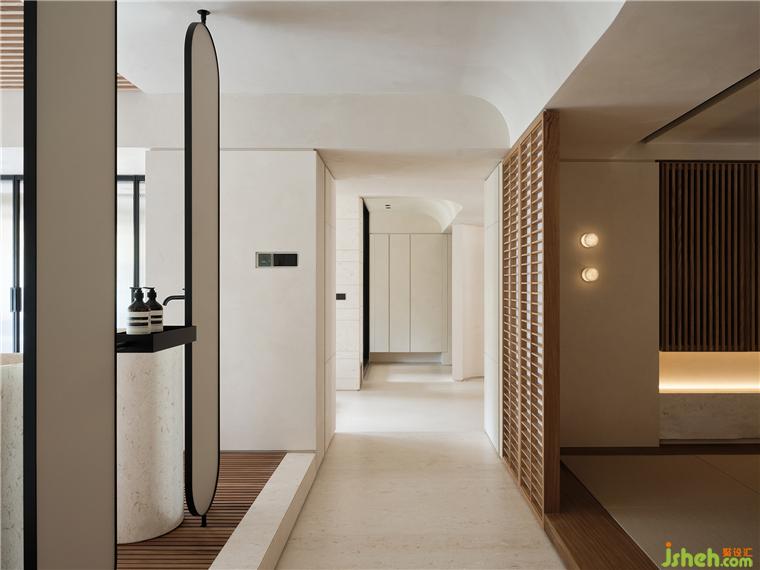 溫泉度假別墅裝修設(shè)計(jì)室內(nèi)布局以開放、流動(dòng)為基調(diào),客廳、餐廳、茶室、臥室、庭院等空間相連相融。自然的清風(fēng)、空氣、陽光、泉水聲等元素于室內(nèi)自由流淌,與富有藝術(shù)構(gòu)造的墻面、天花造型相互碰撞,每一個(gè)音符都化作氤氳的詩意,沁入丹田,這便是詩與遠(yuǎn)方。