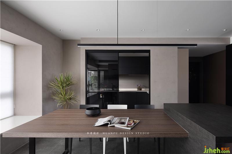 通過格局調(diào)整之后,餐廳與廚房的距離縮短,動線更流暢,中西廚分離,餐廳留有西廚區(qū)與島臺的位置,平日會客與日常烘焙都提升了便利。業(yè)主和我們溝通時開的一句玩笑話,過年的時候可以直接在島臺上和面呢,實用!實用與美觀兼?zhèn)洹?